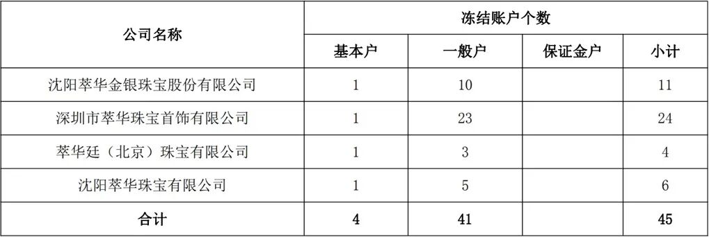 萃华珠宝主要银行账户被冻结的基本情况