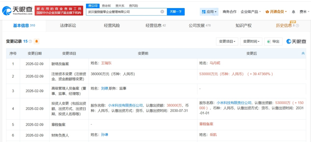 小米旗下武汉企业管理公司增资至53亿,增幅约39%