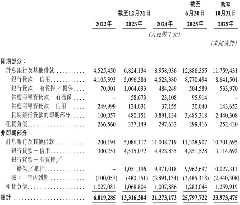 近年来,紫光股份债务压力逐年上升。据此前招股书披露,2022年至2024年,紫光股份的计息银行及其他借款从45.25亿元攀升至68.24亿元、89.59亿元,截至2025年10月31日达到百亿元规模,为117.59亿元。
