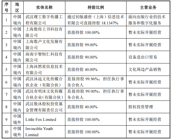 施其明则自2015年至今,担任武汉理工数字传播工程有限公司(下称理工数传)CEO,且他通过初版盛世(上海)信息技术有限公司直接持有理工数传18%以上股份。作为出版行业的“独角兽”企业,理工数传主营业务是面向出版行业的技术服务和数字化服务。