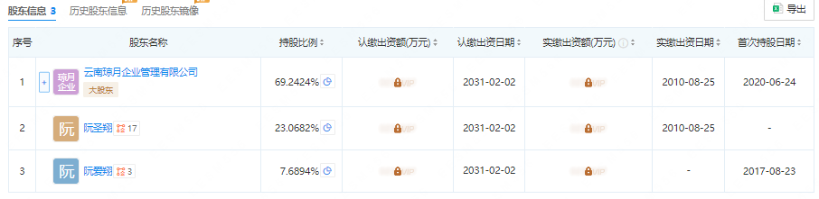 而阮圣翔的发展重心或在圣爱中医多一些。目前,刘琼投资的企业包括云南琼月企业管理有限公司(下称云南琼月)、华龙圣爱中医集团有限公司(下称圣爱中医)、云南圣爱郭氏针灸有限公司等。其中,圣爱中医成立于2010年,在昆明、成都、重庆等地开有子公司。刘琼通过云南琼月、持有圣爱中医约69%股份;阮圣翔、阮爱翔分别持有圣爱中医约23%、7.7%股份。