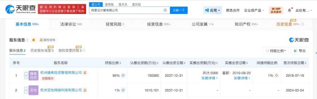 天眼查法律诉讼信息显示,近日,阿里云计算有限公司新增一则被执行人信息,执行标的210万余元,执行法院为杭州市余杭区人民法院。