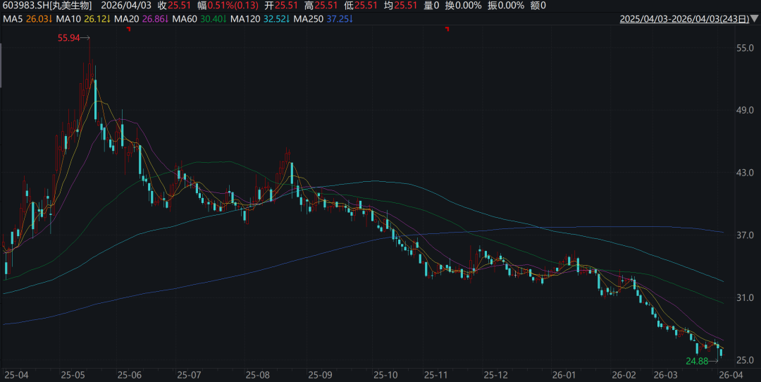 广东丸美生物技术股份有限公司(下称丸美生物,603983.SH)股价迎来近一年新低点。