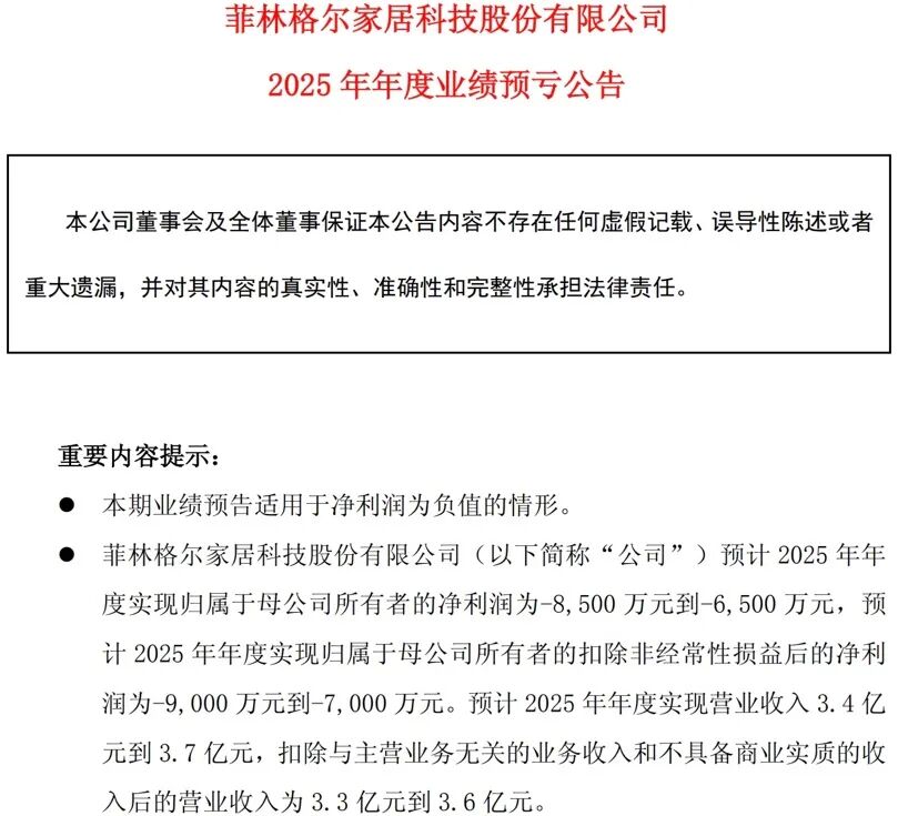 根据最新数据,2025年菲林格尔预将延续亏损,归母净利润预计为-8500万元至-6500万元;营业收入预计为3.4亿元至3.7亿元,扣除与主营业务无关的业务收入和不具备商业实质的收入后营收预计为3.3亿元至3.6亿元。