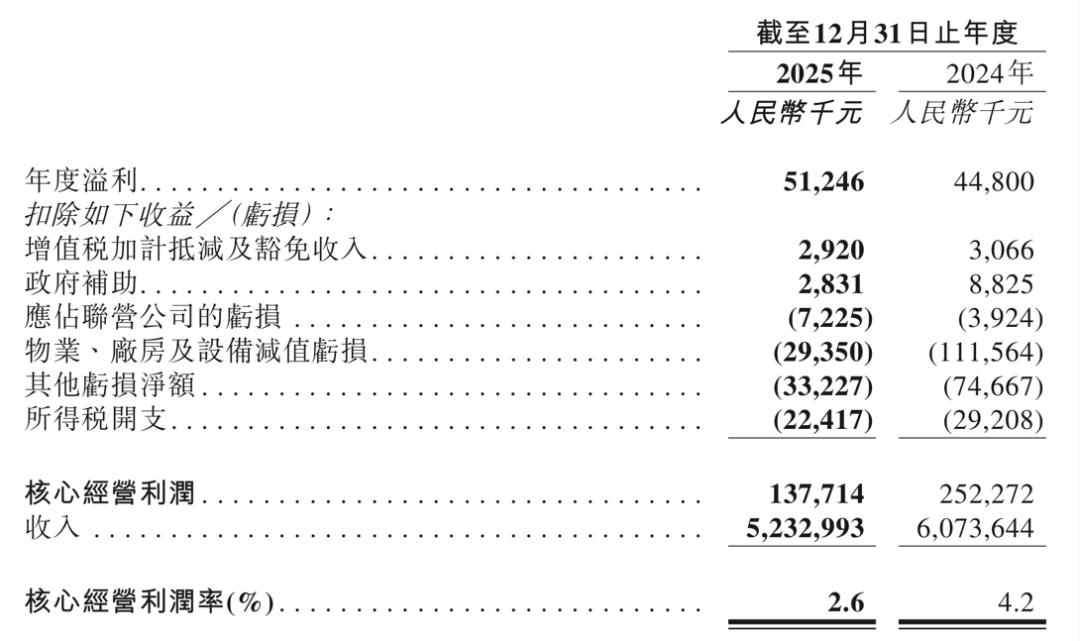 2025年九毛九年度溢利与核心经营利润对比