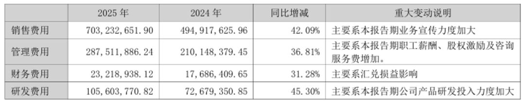 这一现象的出现,依然是受到期间费用大幅攀升的拖累。财报数据显示,公司一季度销售费用同比增长54.49%,主要系境外自主品牌宣传投放力度加大;同期财务费用同比大幅提升315.25%,核心受汇率波动带来的汇兑损益影响。