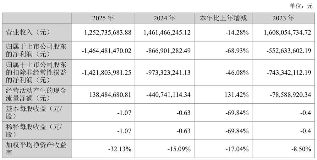 4月26日晚间,博纳影业发布年度业绩报告。数据显示,2025年公司实现营业收入12.53亿元,同比下降14.28%;归母净利润亏损14.64亿元,同比扩大68.93%,亏损额创下上市以来新高。