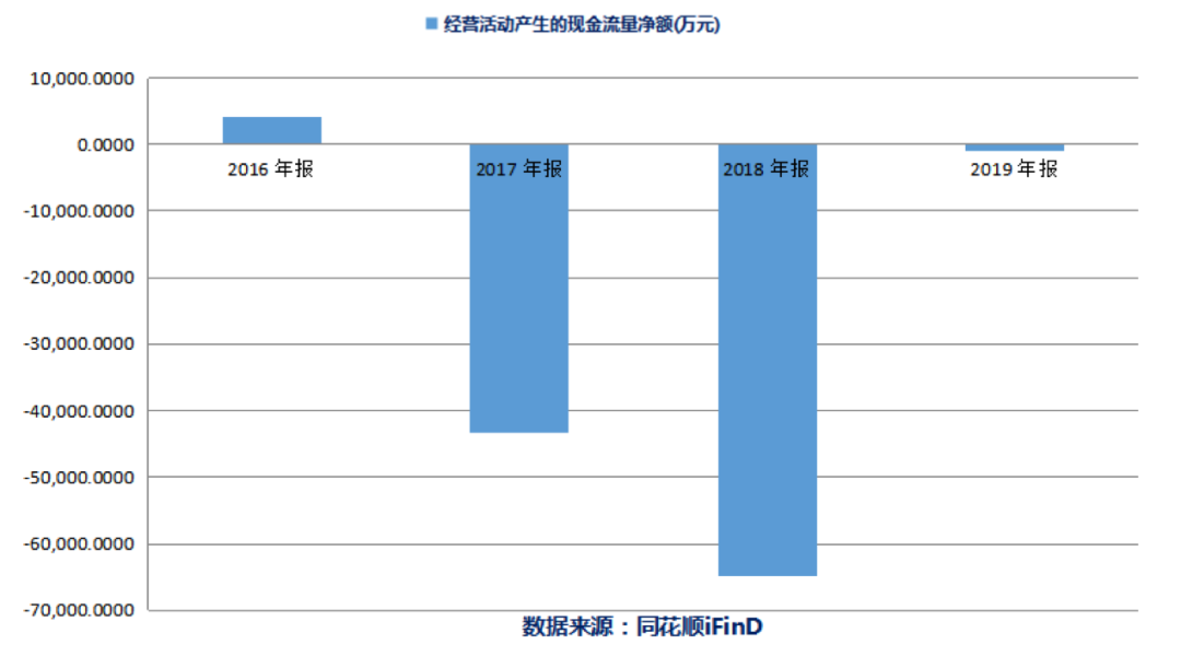 同样需引起重视的,还有该公司持续多年为负的经营活动现金净流量。在问询函中,深交所要求公司结合行业经营模式、可比公司情况、公司生产经营情况等,分析经营活动现金流多年为负的原因及合理性。