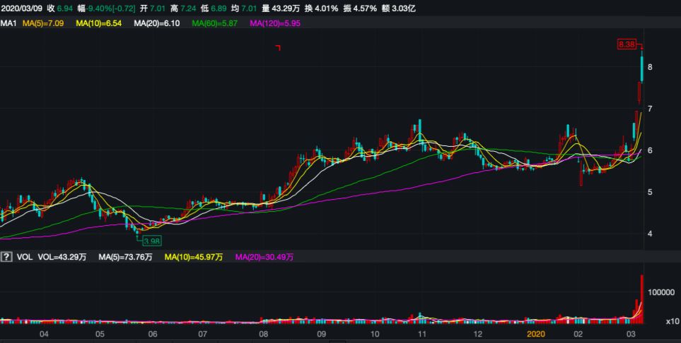 公告披露后,韶能股份股价应声大涨,截至3月6日收盘价已达7.66元/股,3个交易日股价上涨21%。