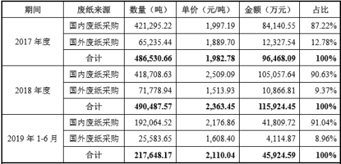 2017年、2018年、2019年1—6月,进口废纸占森林包装废纸总额的比例分别为12.78%、9.73%、8.96%,经测算,在进口废纸与国内废纸价格倒挂的前提下,2018年、2019年1—6月,进口废纸影响公司原纸产品毛利率约为4.07%及1.81%,影响营业利润约为27.15%及19.74%,影响程度较大。