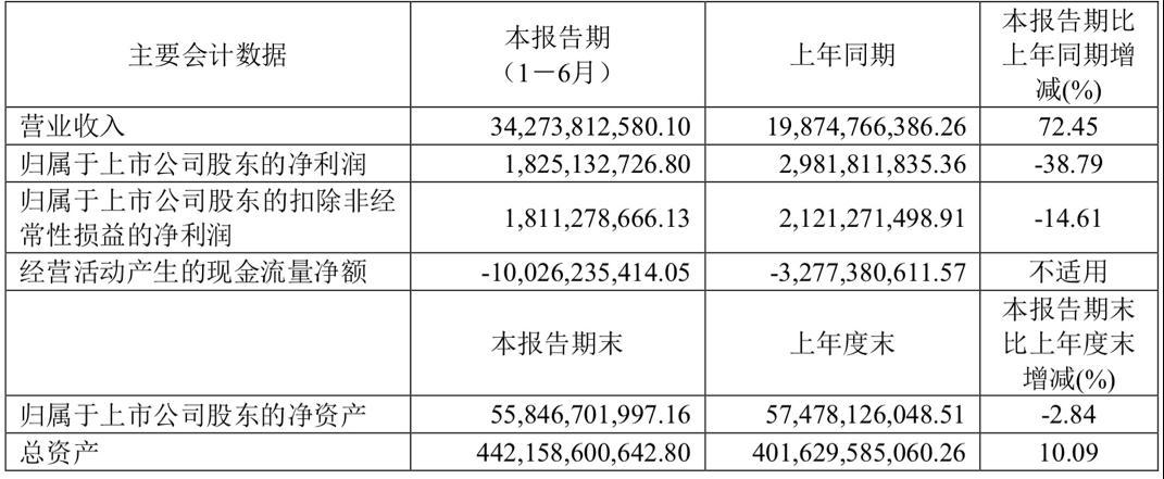 与此同时,由于联合营公司往来款和投资支付的现金增加,该公司上半年经营活动产生的现金流量净额和投资活动产生的现金流量净额分别为-100.3亿元和-53.13亿元。