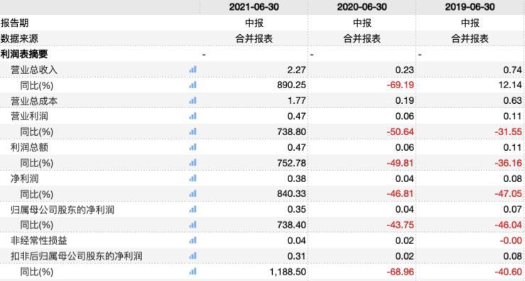 岩石股份近三年上半年业绩情况(亿元)