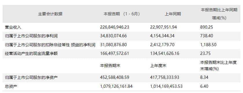 岩石股份2021年上半年主要会计数据(元)