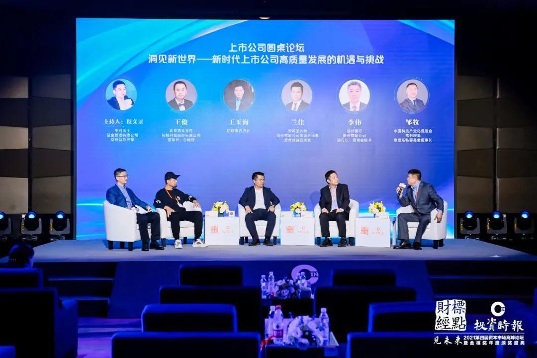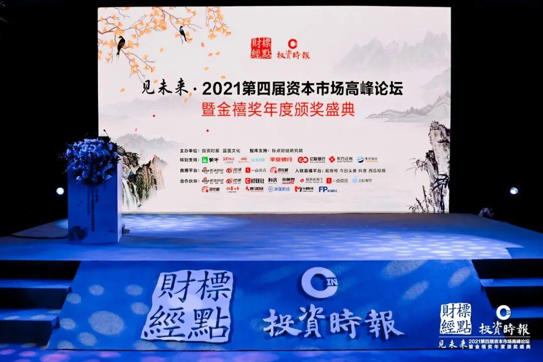 2021年12月1日,由标点财经研究院联合《投资时报》主办的“见未来•2021第四届资本市场高峰论坛暨金禧奖年度颁奖盛典”隆重举行。在现场,与会嘉宾济济一堂,围绕后疫情时代的经济和投资、消费演进趋势、全球绿色权益资产投资、高质量发展时代投资理财新思维、全球资管机构ESG趋势与实践、新时代上市公司高质量发展的机遇与挑战、品质时代如何谱写高质量发展最强音等多个议题展开了深入的讨论与交流,为推动企业健康高质量发展及中国资本市场进一步完善贡献力量。