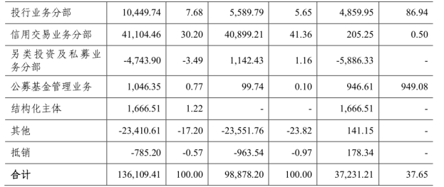 湘财证券各业务分部的营业收入变化