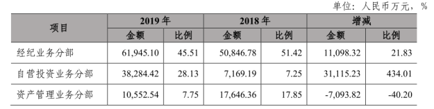 具体来看该公司收入结构,经纪业务收入为6.19亿元,同比增长21.83%,占营业收入的比例为45.51%;自营业务收入为3.83亿元,增幅高达434.01%;投行业务收入为1.04亿元,同比增长86.94%。上述三项业务是拉动该公司营业收入增长的重要贡献来源。