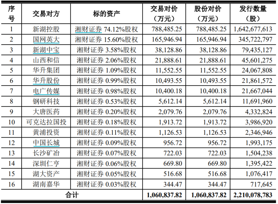本次交易是同一控制人下的关联交易。湘财证券第一大股东为新湖控股有限公司(下称新湖控股),哈高科的第一大股东是浙江新湖集团股份有限公司,实控人都是黄伟。