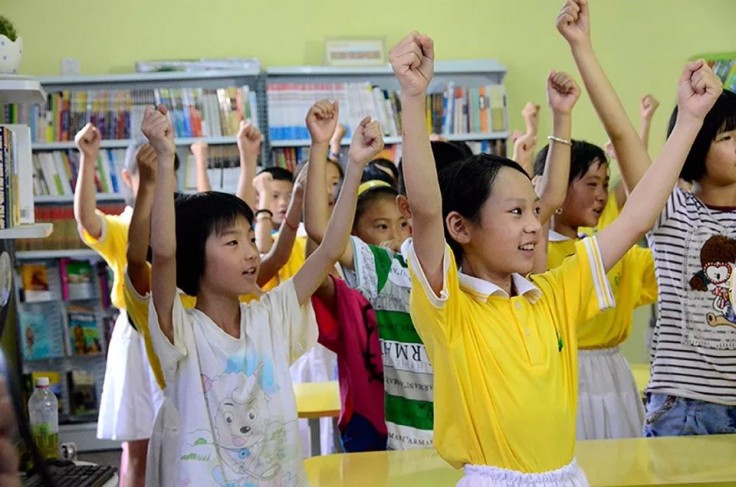 兴业证券梦想课堂上,孩子们与老师互动游戏