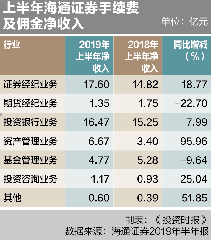 海通证券半年报显示,报告期内,该公司证券承销业务收入为11.91亿元,同比增16.99%;证券保荐业务收入为283.02万元,同比降25%。保荐业务收入不理想或许与其保荐成功的五家公司中有三家是在今年第三季度上市有关。同时,上半年海通证券投资银行业务手续费净收入同比增8%,低于经纪业务手续费净收入和资产管理业务手续费净收入增速。