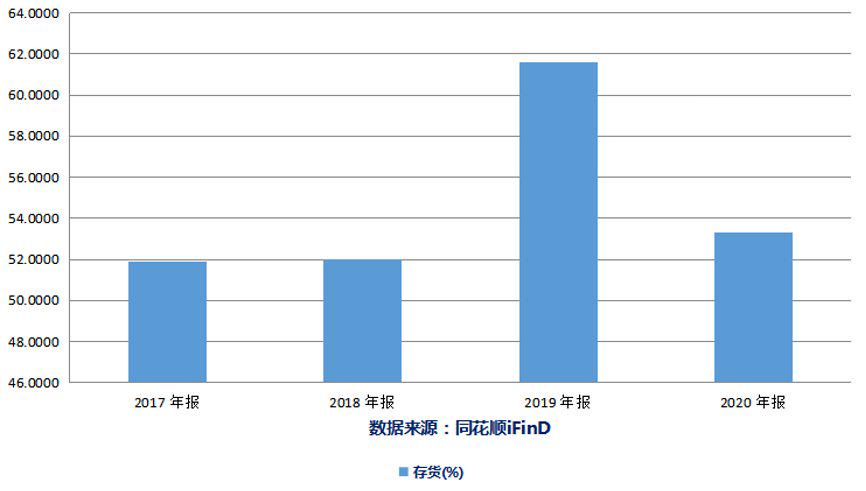 截至2020年年末,该公司存货余额为14.15亿元,约占总资产的53.44%。报告期内计提存货跌价准备284万元,计提比例约为0.2%,前期未曾计提。