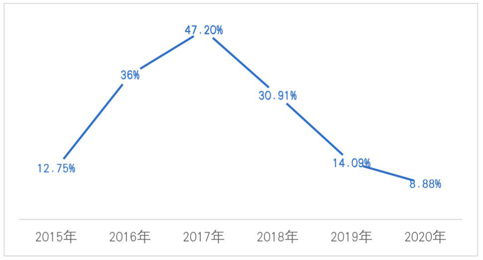 保利地产2020年年报显示,去年该公司实现营业收入2430.95亿元,同比上升3.04%,归母净利润为289.48亿元,同比增长3.54%,增速分别较2019年下滑18.25个百分点和44.36个百分点。纵观其过去几年的业绩数据发现,其营业收入增速自2019年开始逐年下滑,而归母净利润增速则骤降至2017年以来最低。